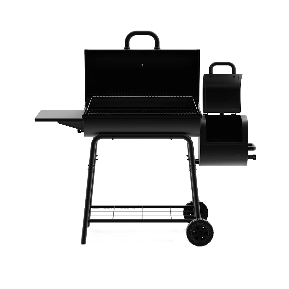 Our new 29 inch Barrel Charcoal Grill with Smoker offers the versatility of charcoal and smoking all in one high-quality, affordable, ready-for-anything grill. The main charcoal barrel offers 3-position height adjustment for added temperature control and a spring-loaded charcoal chimney for optimal airflow. The 12" x 12" offset box can be used as a smoking chamber or an efficient cost-saving grill zone for small meals.Â