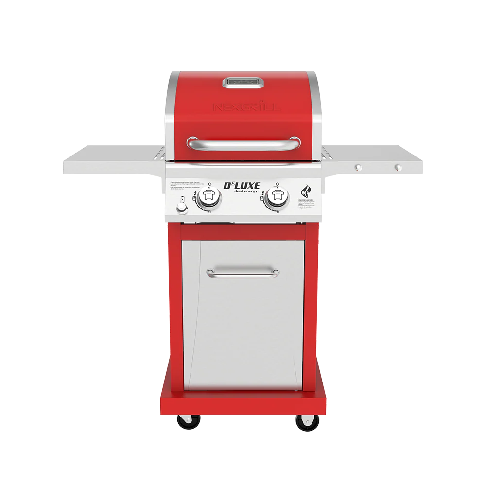 With a small footprint and foldable side shelves, the durable and attractive Nexgrill DEluxe 2-Burner Gas Grill in Red is perfect for the griller with limited space and an appetite for big flavor and BBQ flair.